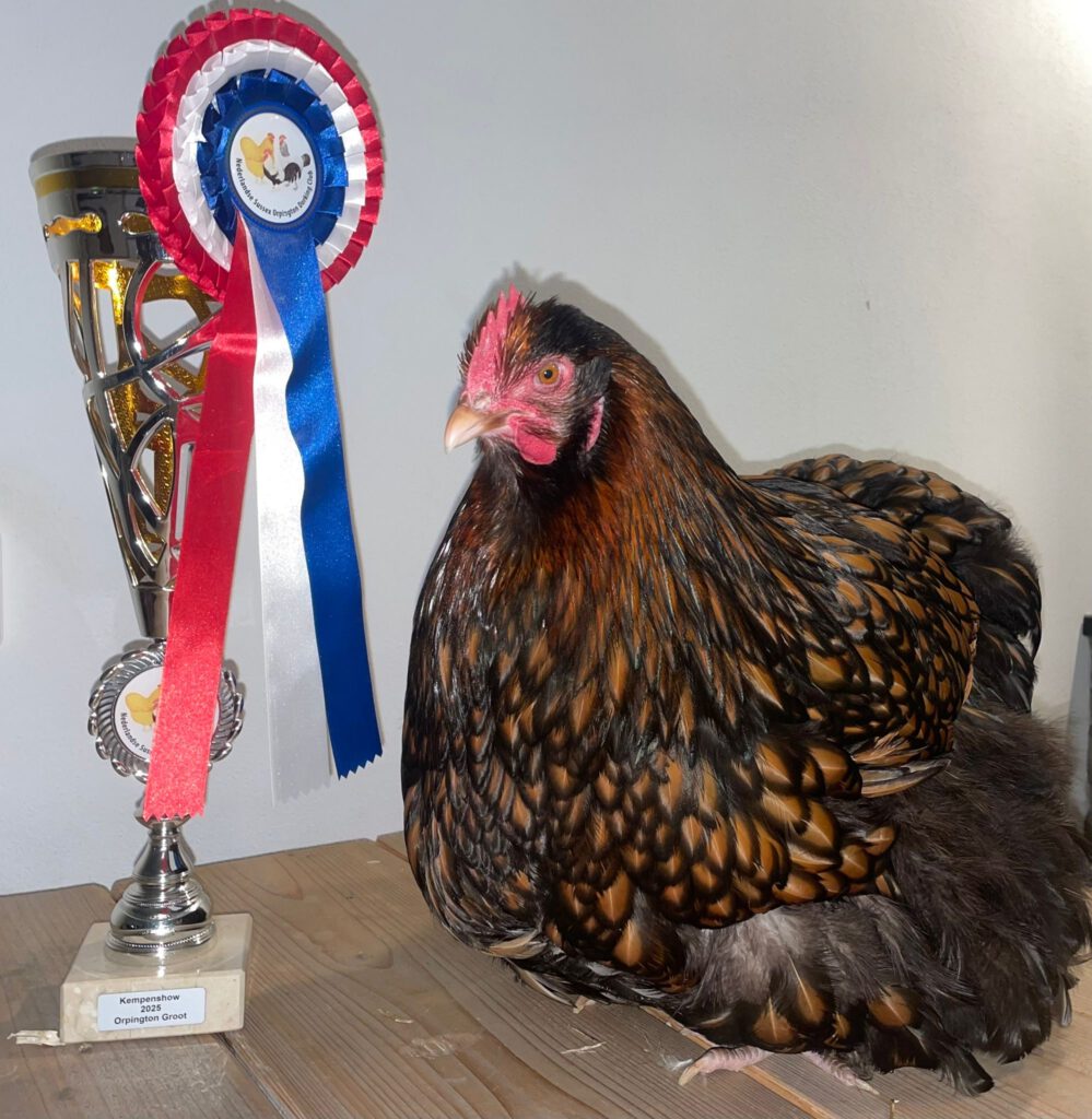 Kleuren: Orpingtons hebben wij in de kleur Goud Geel Zwart Gezoomd. Aangezien er weinig fokkers zijn van deze prachtige kippen, zijn andere kleurslagen lastiger te krijgen, maar de Goud Geel Zwart Gezoomde kunt u soms wel bij ons te verkrijgen.
